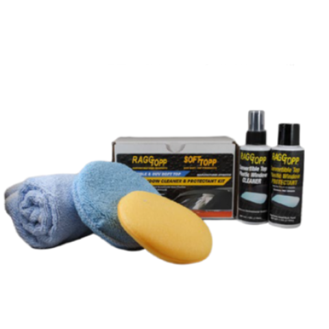1 X RAGGTOPP Fabric & Vinyl Cleaner 1 X RAGGTOPP Convertible Top Vinyl Protectant Comes in a vinyl carrying bag for customer convenience.